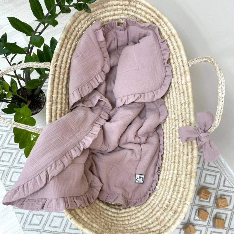 для щоденного використання мусліновий плед-конверт з рюшами і бантом.
