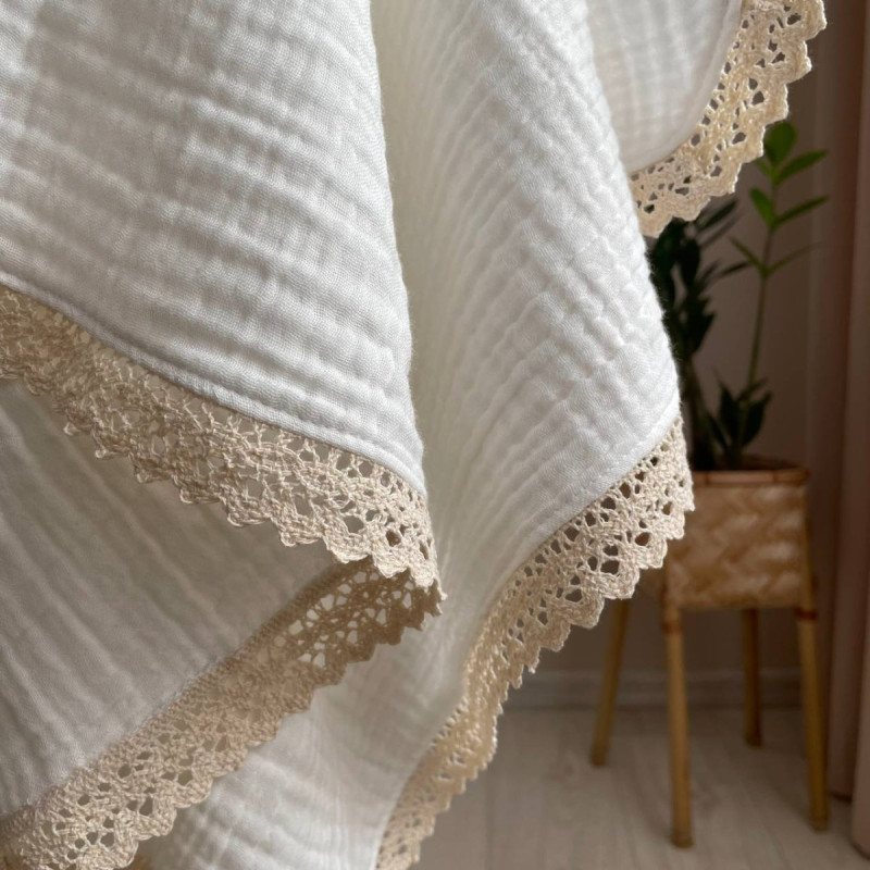 Плед Msonya муслін жатка Білий з мереживом Мальви бежеве