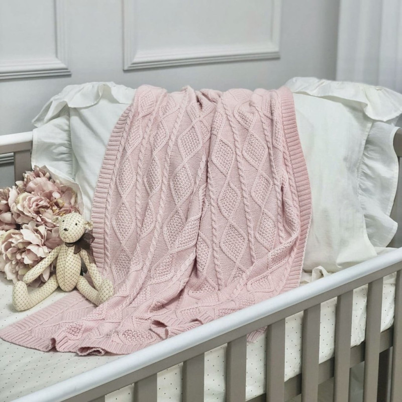Плед Msonya В'язаний ромб-коса персик