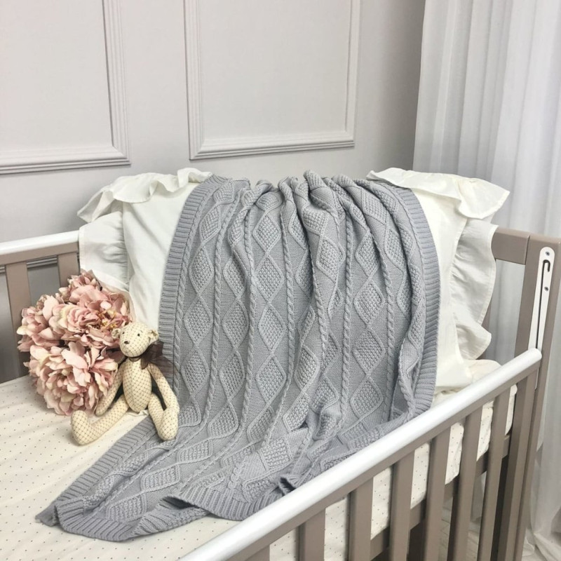 Плед Msonya В'язаний ромб-коса сірий