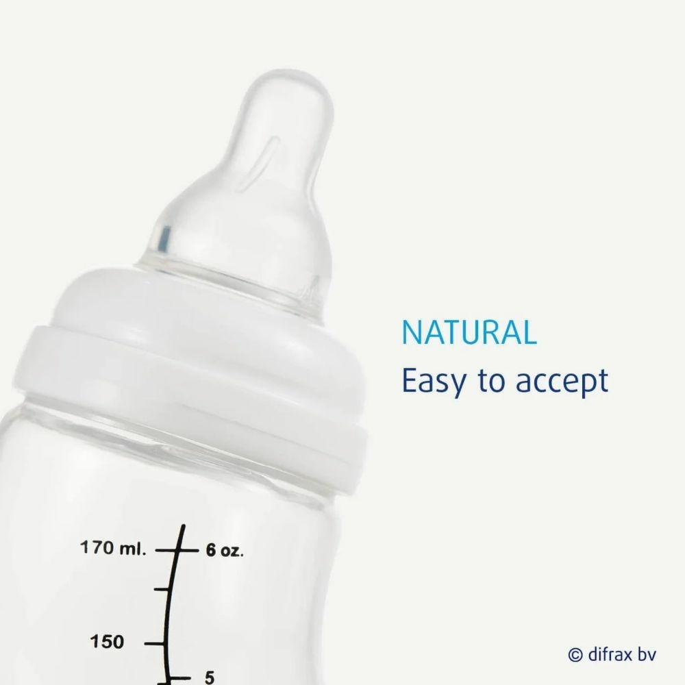 Завдяки можливості регулювання потоку (для рідкої їжі, злегка загуслої або густої їжі) пляшечка підходить як для молока, так і для каш чи інших густих продуктів. М'яка соска з круглою формою, що нагадує материнські груди, забезпечує максимальний комфорт для малюка.