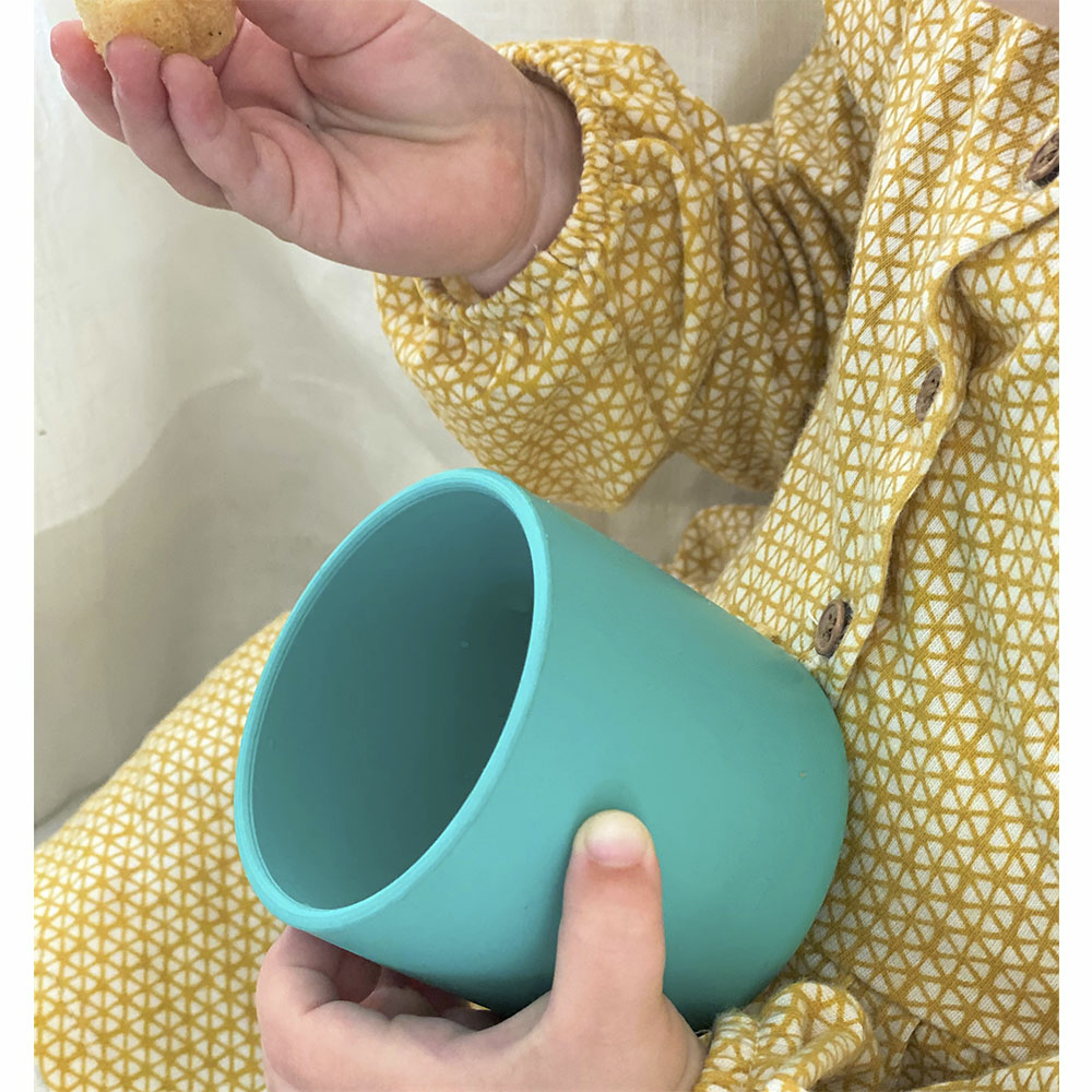 Чашка MinikOiOi Mini Cup розроблена для зручного користування малюками, сприяючи розвитку їхньої дрібної моторики. Виготовлена з 100% харчового силікону, вона є безпечною альтернативою пластиковим виробам і допомагає дитині навчитися пити самостійно. Чашка має спеціальний дизайн, що дозволяє дитині легко тримати її і піднімати, що робить процес годування більш цікавим і зручним.