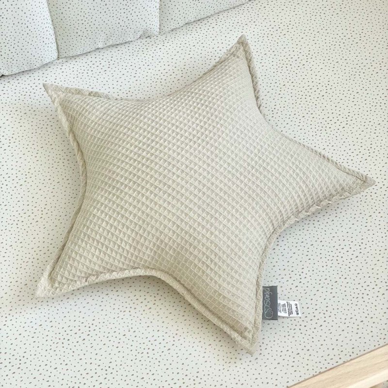 Красива та оригінальна подушечка у формі зірки для дитячого ліжечка. Завдяки подушечці, у ліжечку створюється затишна атмосфера, а також, декор використовують для фотосесій.