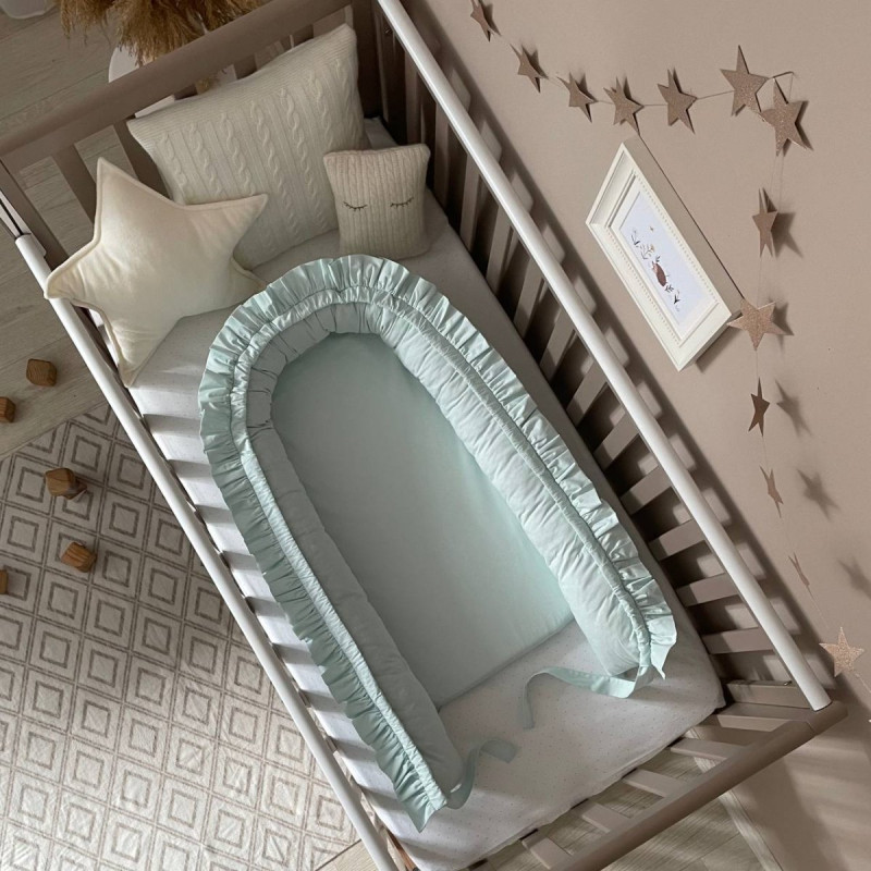 Подушка Msonya Комплект кокон з рюшем + + плед світла м'ята