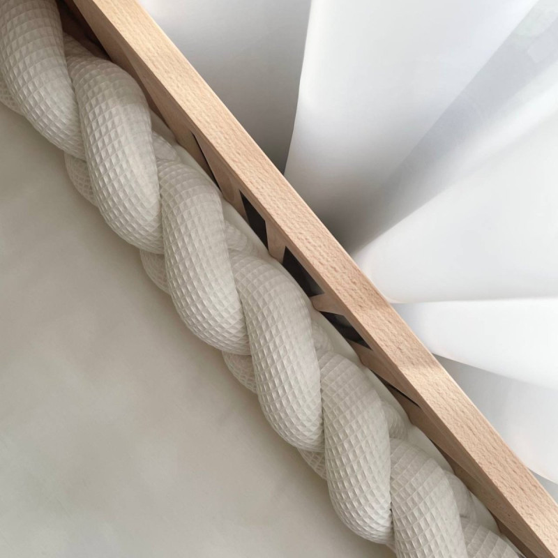 Бортик-коса із вафельної тканини - стильний, унікальний своєю структурою, м'який, приємний на дотик захист, не обмежує доступ повітря в ліжечко, зручний, не займає багато місця. Коли малюк підростає, незамінний для ігор і для декору дитячої кімнати. До народження малюка, можна використовувати, як зручну подушку для відпочинку.