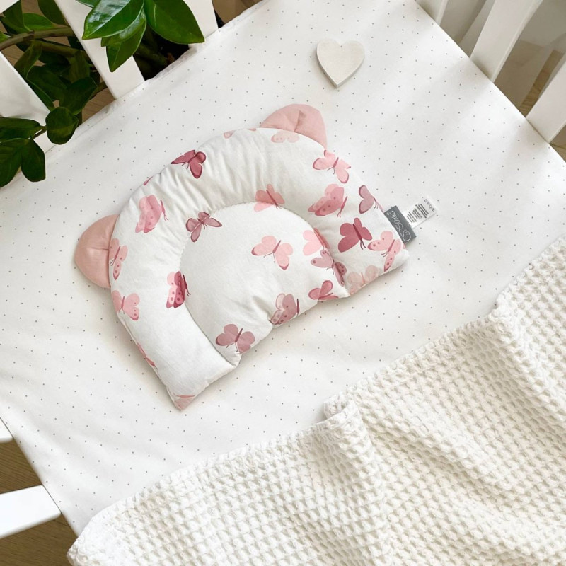 Подушка з вушками призначена для найменших дітей та немовлят. Завдяки компактним розмірам, подушечка добре увійде як до дитячого ліжечка, так і до стандартного візочка.
