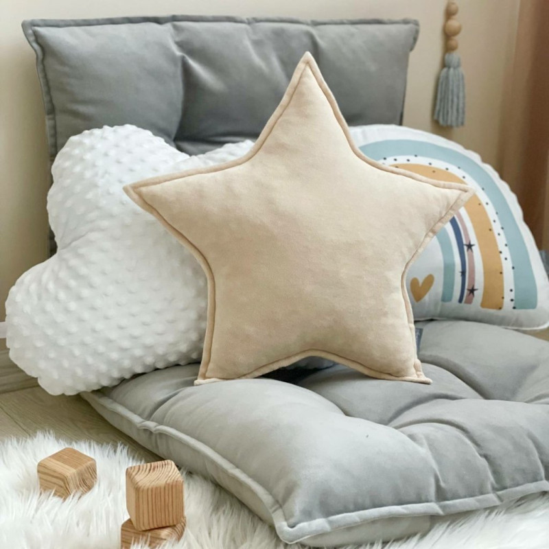 Красива та оригінальна подушечка у формі зірки для дитячого ліжечка.