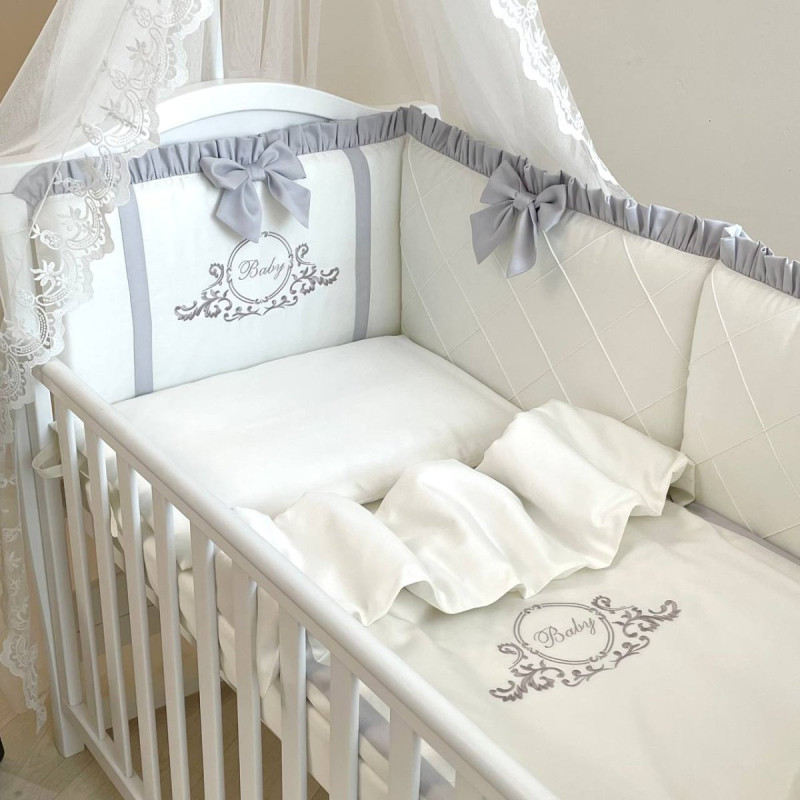 Комплектація:захист із роздільних частин- обємних подушок на блискавці 6 шт. 30 х 60 +/- 2 см; ковдра, 110 х 90 +/- 2 см.; підковдра на блискавці, 110 х 90 +/- 2 см. ; подушка, 40 х 60 + /- 2 см.; наволочка, 40 х 60 +/- 2 см.; простирадло на гумці, 120 х 60 х 15 +/- 2 см.; комплект запакований у прозорий чемодан з ручками .