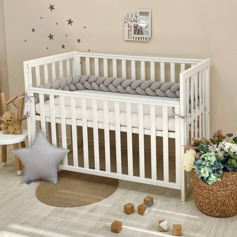 Стильний, м'який, приємний на дотик захист, не обмежує доступ повітря в ліжечко, зручний, не займає багато місця. Підходить для прямокутних, овальних та круглих ліжечок. Коли малюк підростає, незамінна для ігор та для декору дитячої кімнати.До народження малюка, можна використовувати як зручну подушку для відпочинку.