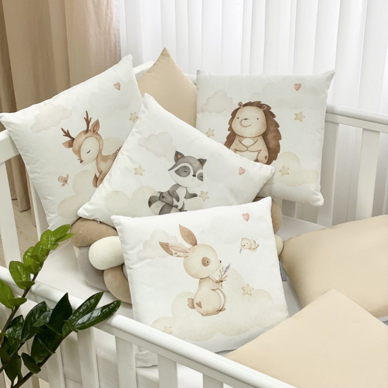 Матеріал комплекту: поплін, Бортик-коса - велюр.Наповнювач: силіконізоване волокно, холлофайбер.