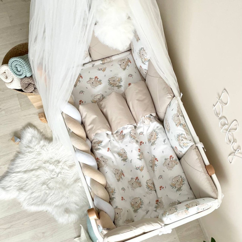Комплект постільної білизни з 6 предметів (бортики, ковдра, подушка, підковдра, наволочка, простирадло), 100% бавовна.