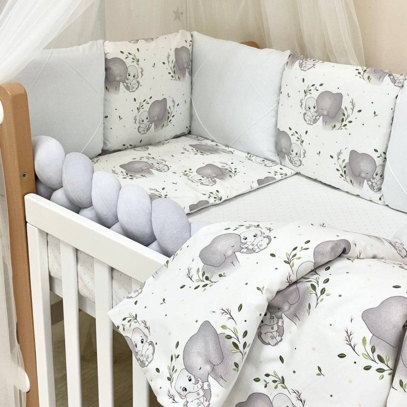 Комплект постільної білизни з 6 предметів (бортики, ковдра, подушка, підковдра, наволочка, простирадло), 100% бавовна.
