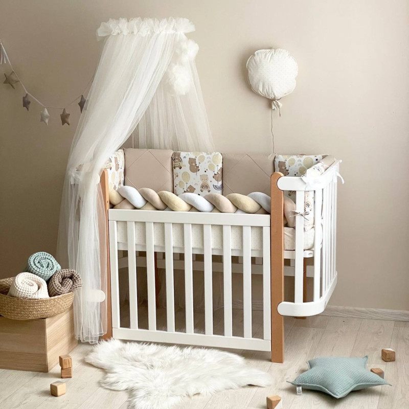 Комплект постільної білизни з 6 предметів (бортики, ковдра, подушка, підковдра, наволочка, простирадло), 100% бавовна.