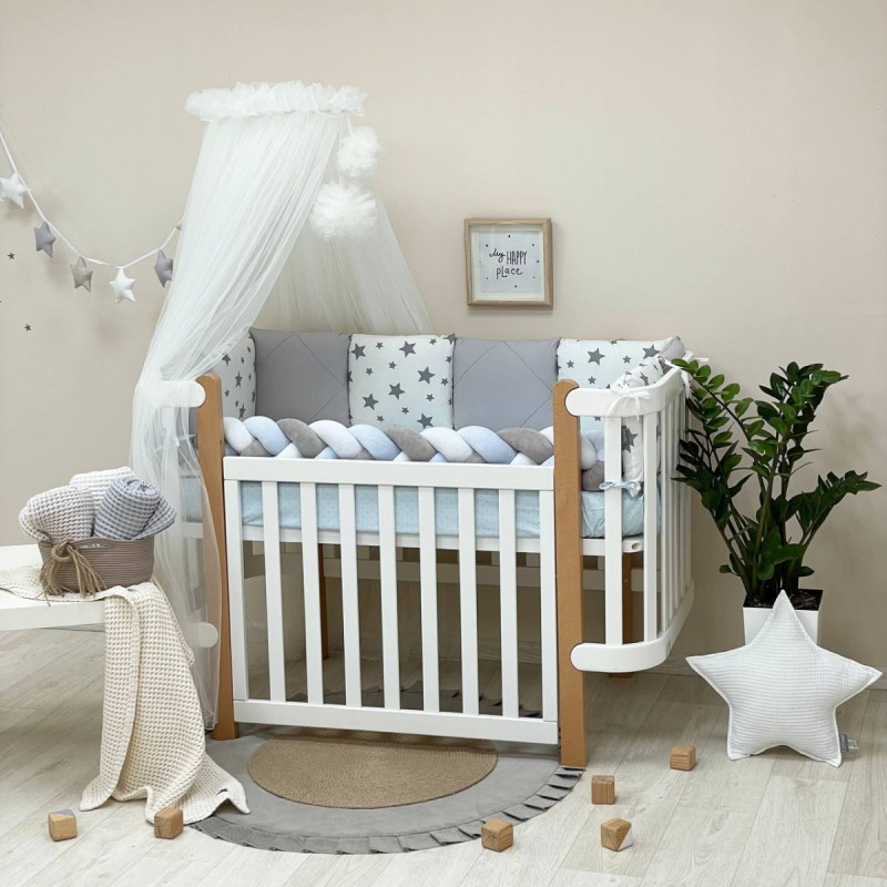 Комплект постільної білизни з 6 предметів (бортики, ковдра, подушка, підковдра, наволочка, простирадло), 100% бавовна.