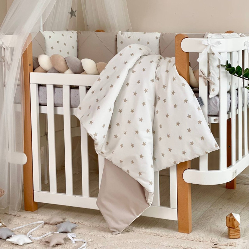 Комплект постільної білизни з 6 предметів (бортики, ковдра, подушка, підковдра, наволочка, простирадло), 100% бавовна.