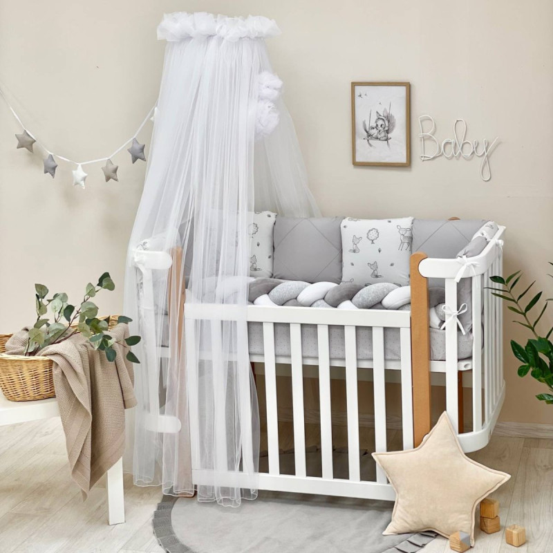 Комплект постільної білизни з 6 предметів (бортики, ковдра, подушка, підковдра, наволочка, простирадло), 100% бавовна.