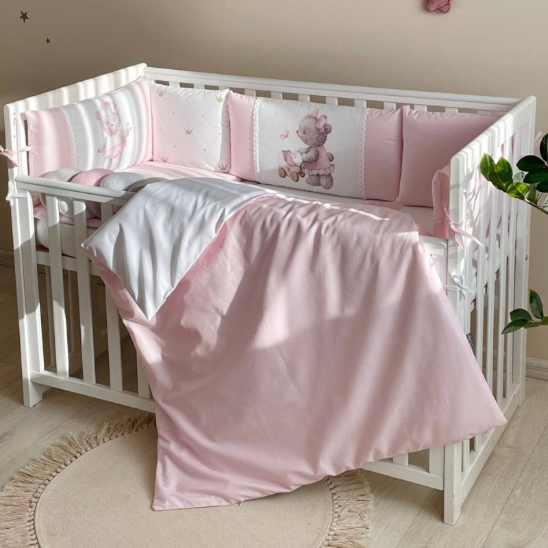 Комплект постільної білизни з 6 предметів (бортики, ковдра, подушка, підковдра, наволочка, простирадло), 100% бавовна.