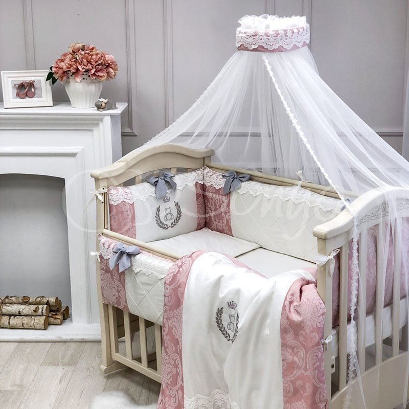 Комплект постільної білизни із 7 предметів (бортики, ковдра, подушка, підковдра, наволочка, простирадло, балдахін), 100% бавовна.