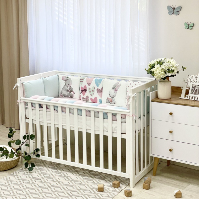 Комплект постільної білизни з 6 предметів (бортики, ковдра, подушка, підковдра, наволочка, простирадло), 100% бавовна.