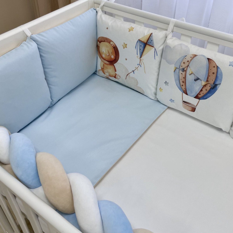 Комплект постільної білизни з 6 предметів (бортики, ковдра, подушка, підковдра, наволочка, простирадло), 100% бавовна.