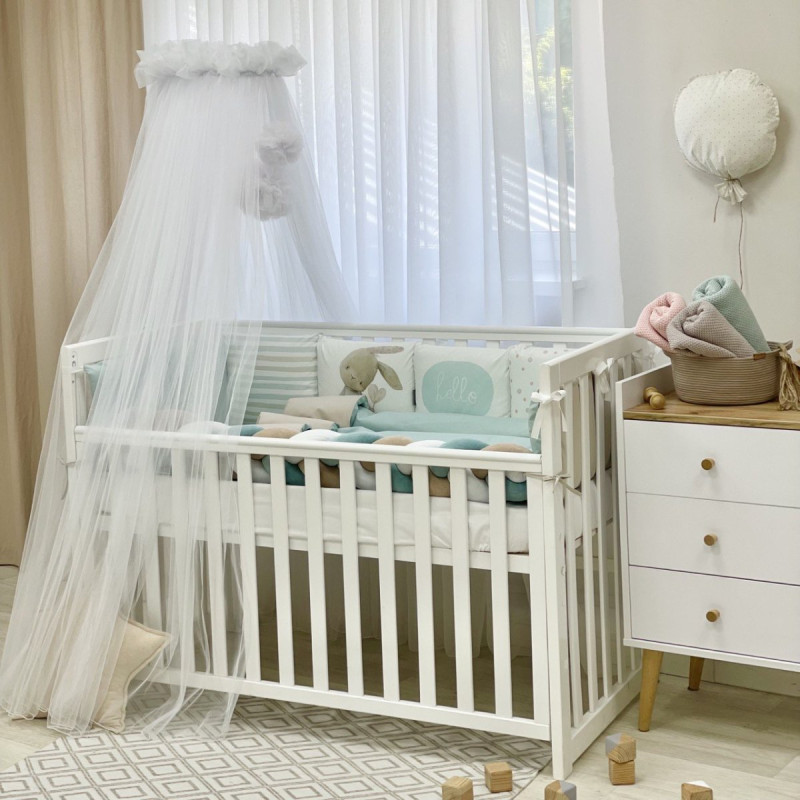 Комплект постільної білизни з 6 предметів (бортики, ковдра, подушка, підковдра, наволочка, простирадло), 100% бавовна.