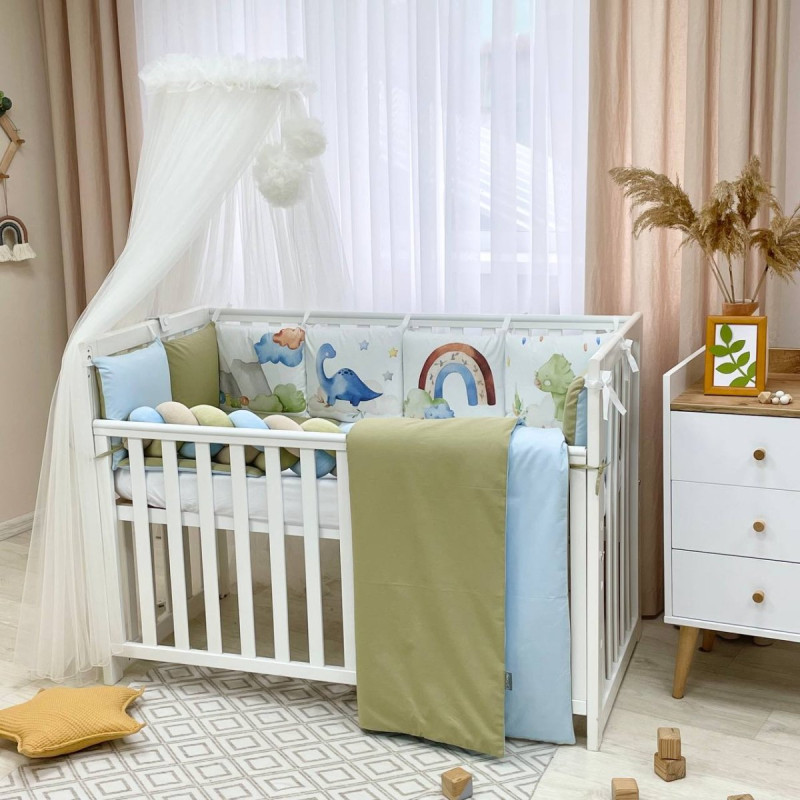 Комплект постільної білизни з 6 предметів (бортики, ковдра, подушка, підковдра, наволочка, простирадло), 100% бавовна.