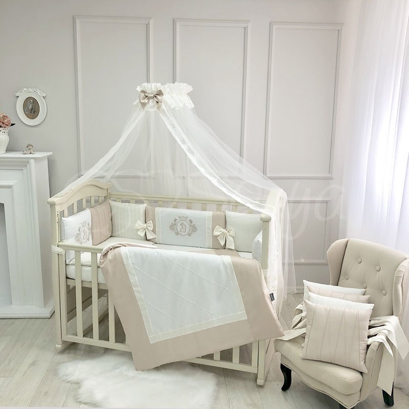 Комплект постільної білизни із 7 предметів (бортики, ковдра, подушка, підковдра, наволочка, простирадло, балдахін), 100% бавовна.