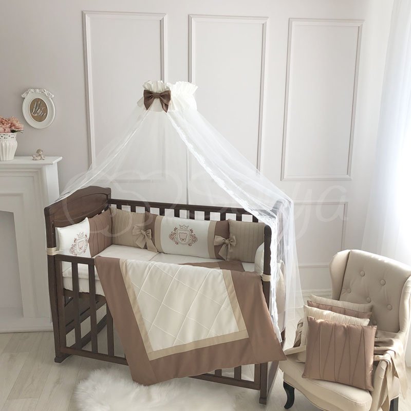 Комплект постільної білизни із 7 предметів (бортики, ковдра, подушка, підковдра, наволочка, простирадло, балдахін), 100% бавовна.