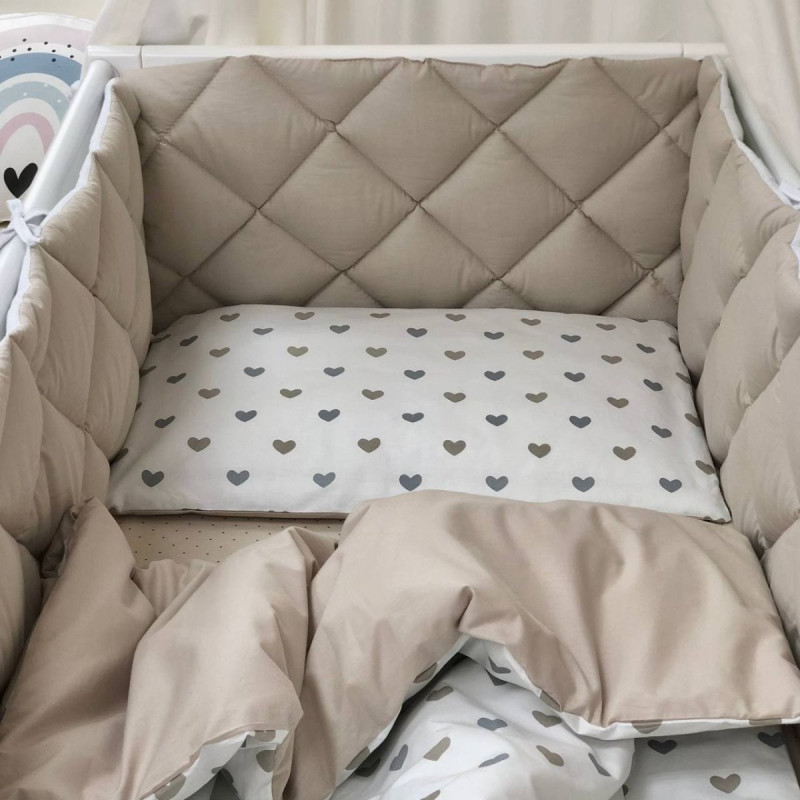 Комплект постільної білизни з 6 предметів (бортики, ковдра, подушка, підковдра, наволочка, простирадло), 100% бавовна.