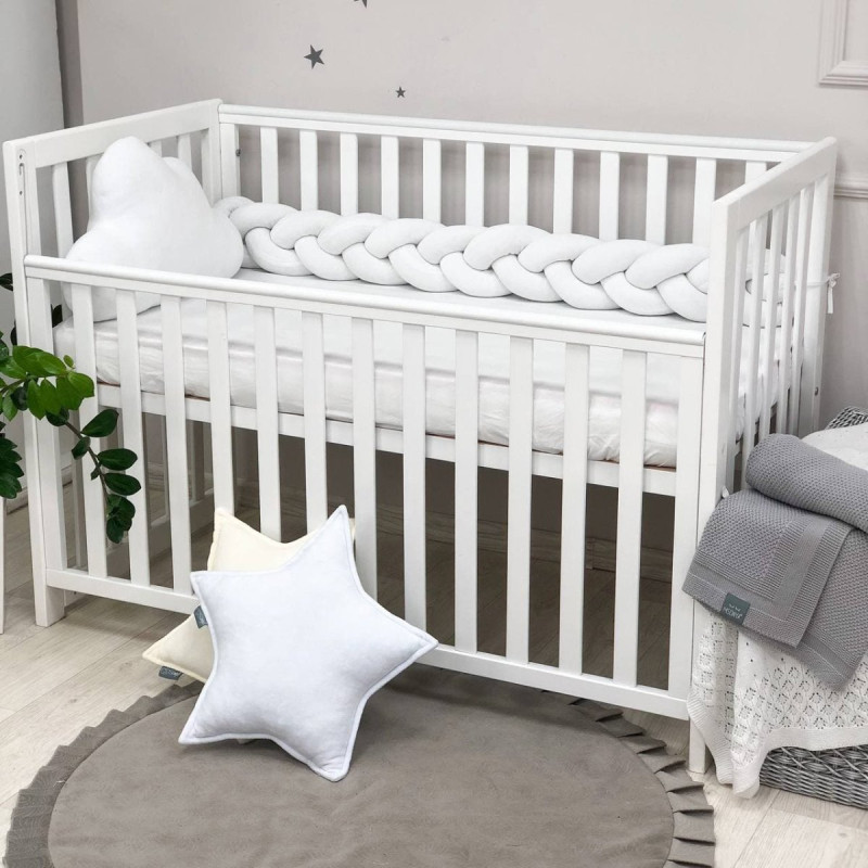 Стильний, м'який, приємний на дотик захист, не обмежує доступ повітря в ліжечко, зручний, не займає багато місця. Підходить для прямокутних, овальних та круглих ліжечок. Коли малюк підростає, незамінна для ігор та для декору дитячої кімнати. До народження малюка можна використовувати як зручну подушку для відпочинку.