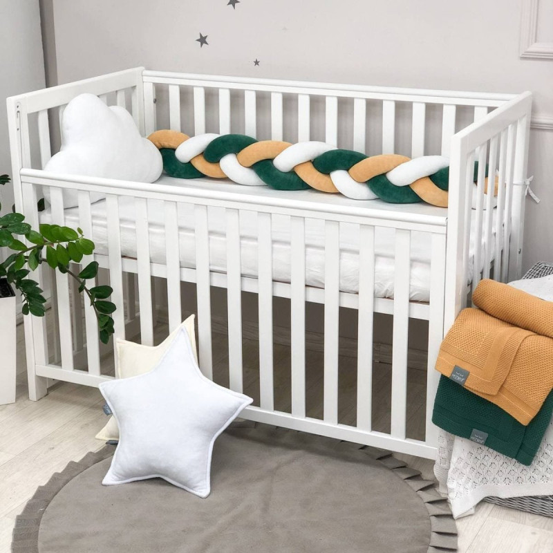 Стильний, м'який, приємний на дотик захист, не обмежує доступ повітря в ліжечко, зручний, не займає багато місця. Підходить для прямокутних, овальних та круглих ліжечок. Коли малюк підростає, незамінна для ігор та для декору дитячої кімнати. До народження малюка можна використовувати як зручну подушку для відпочинку.