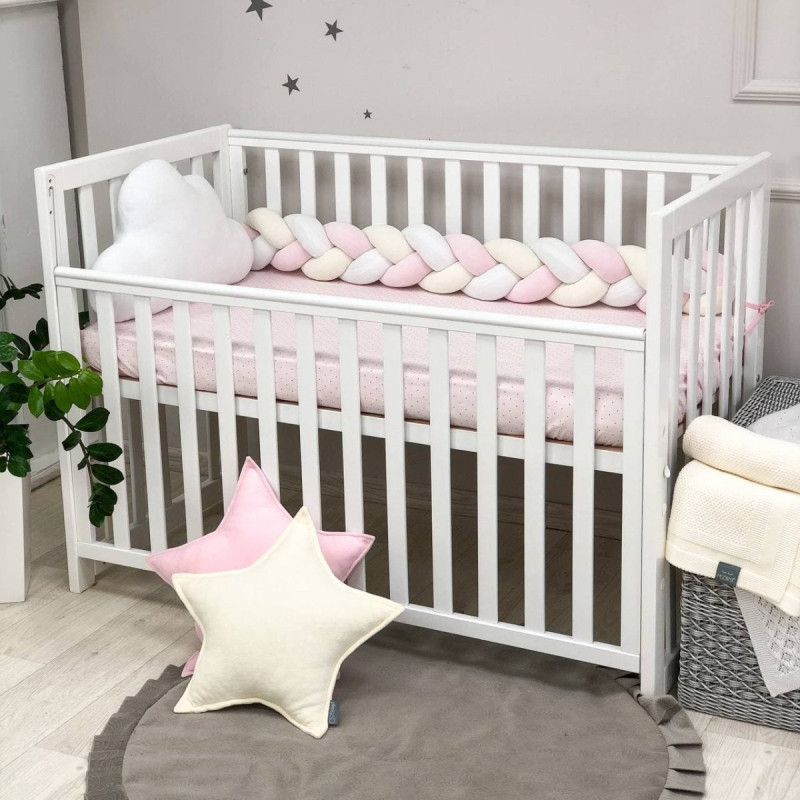 Стильний, м'який, приємний на дотик захист, не обмежує доступ повітря в ліжечко, зручний, не займає багато місця. Підходить для прямокутних, овальних та круглих ліжечок. Коли малюк підростає, незамінна для ігор та для декору дитячої кімнати. До народження малюка можна використовувати як зручну подушку для відпочинку.