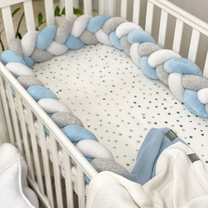 Стильний, м'який, приємний на дотик захист, не обмежує доступ повітря в ліжечко, зручний, не займає багато місця. Підходить для прямокутних, овальних та круглих ліжечок. Коли малюк підростає, незамінна для ігор та для декору дитячої кімнати. До народження малюка можна використовувати як зручну подушку для відпочинку.