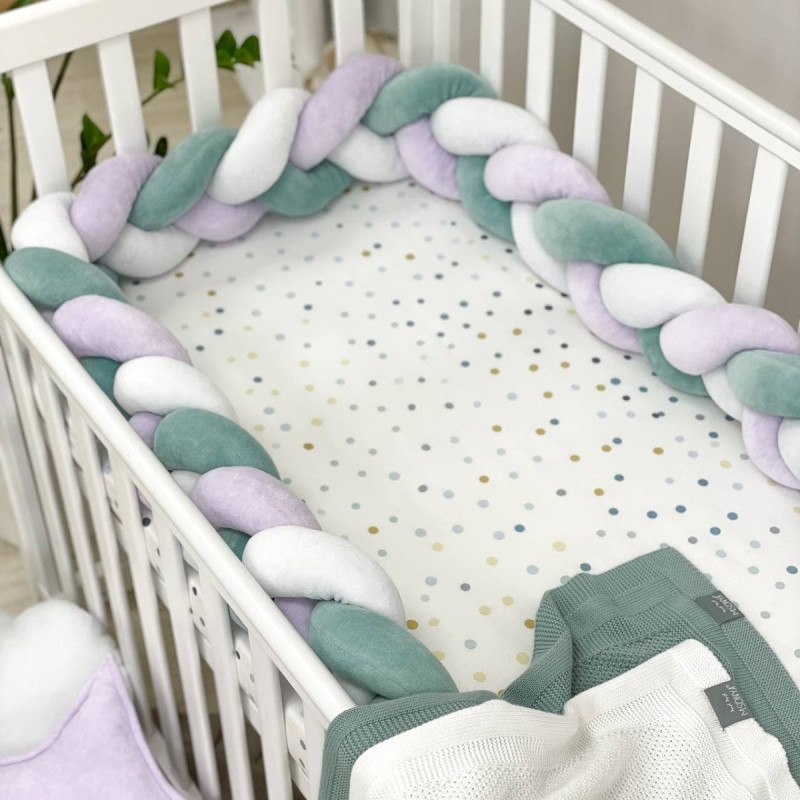 Стильний, м'який, приємний на дотик захист, не обмежує доступ повітря в ліжечко, зручний, не займає багато місця. Підходить для прямокутних, овальних та круглих ліжечок. Коли малюк підростає, незамінна для ігор та для декору дитячої кімнати. До народження малюка можна використовувати як зручну подушку для відпочинку.