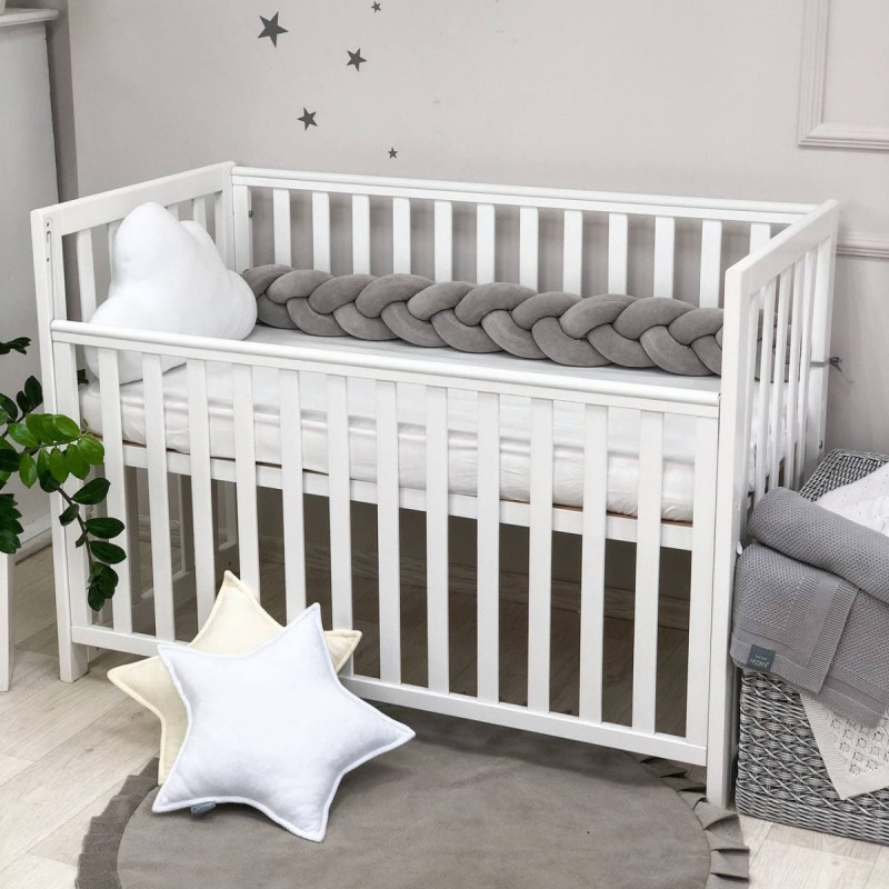 Стильний, м'який, приємний на дотик захист, не обмежує доступ повітря в ліжечко, зручний, не займає багато місця. Підходить для прямокутних, овальних та круглих ліжечок. Коли малюк підростає, незамінна для ігор та для декору дитячої кімнати. До народження малюка можна використовувати як зручну подушку для відпочинку.