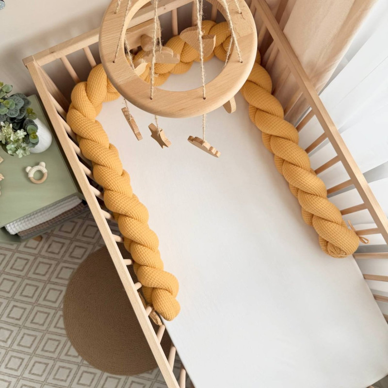 Стильний, м'який, приємний на дотик захист, не обмежує доступ повітря в ліжечко, зручний, не займає багато місця. Підходить для прямокутних, овальних та круглих ліжечок. Коли малюк підростає, незамінна для ігор та для декору дитячої кімнати.До народження малюка, можна використовувати як зручну подушку для відпочинку.
