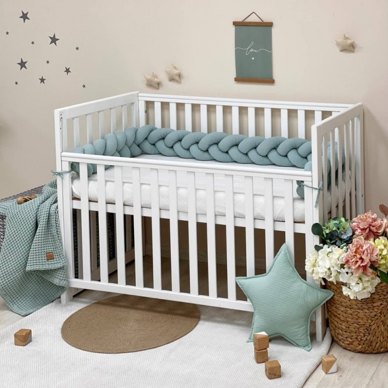 Стильний, м'який, приємний на дотик захист, не обмежує доступ повітря в ліжечко, зручний, не займає багато місця. Підходить для прямокутних, овальних та круглих ліжечок. Коли малюк підростає, незамінна для ігор та для декору дитячої кімнати.До народження малюка, можна використовувати як зручну подушку для відпочинку.