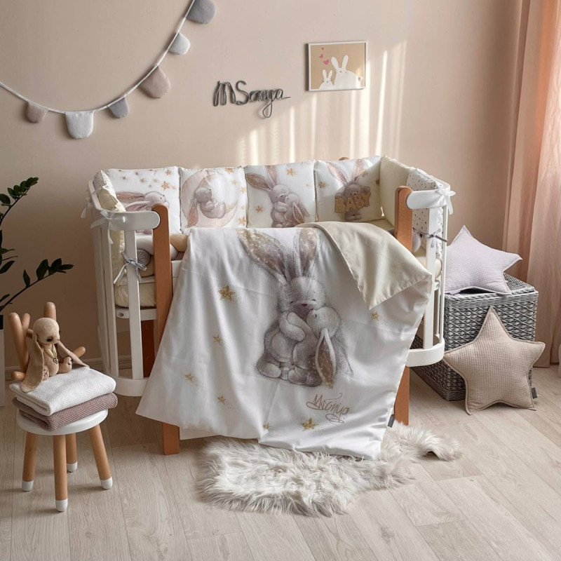 Комплектація:захист із роздільних частин- обємних подушечок на блискавці 8 штук 30 х 32 +/- 2 см.; бортик-коса (матеріал велюр, наповнювач холлофайбер) 120 х 17 +/- 2 см.;ковдра, 110 х 90 +/- 2 см.; підковдра на блискавці, 110 х 90 +/- 2 см.; подушечка, 40 х 60 +/- 2 см.; наволочка, 40 х 60 +/- 2 см.; простирадло на резинці, 120 х 60 х 15 +/- 2 см.; комплект запакований у прозорий чемодан з ручками.