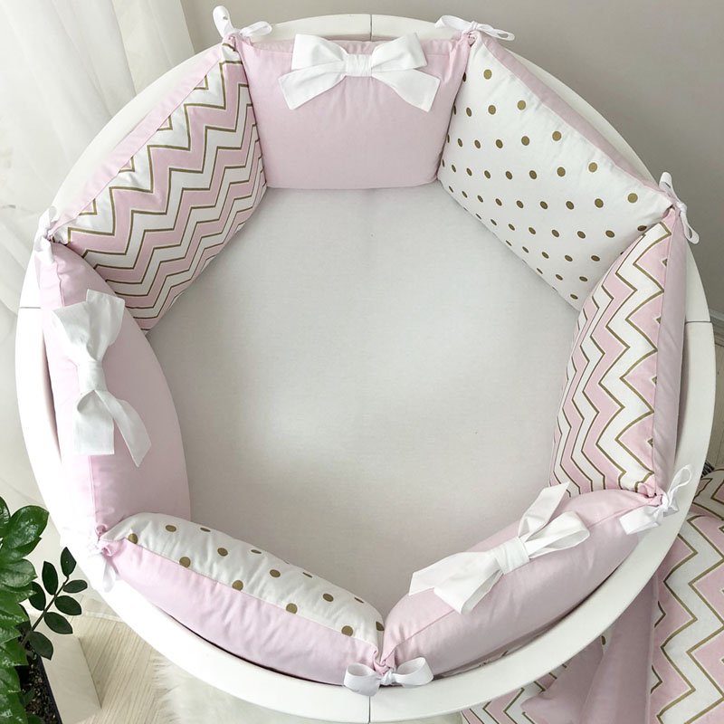 Бортики та простирадло, пошиті з польського попліну з гліттером. Простирадло на гумці ідеально повторює форму матраца в ліжку.Ecotton – екологічно чистий, гіпоалергенний наповнювач, створений на основі натуральних бавовняних волокон. Ecotton soft полегшений та вдосконалений спеціально для виготовлення ковдр та подушечок у ліжечко, на базі основних норм та вимог до постільних речей для найменших.
