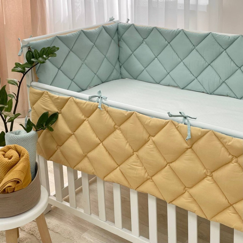 Постільна білизна Msonya Стьобаний бортик тм'ята/гірчиця
