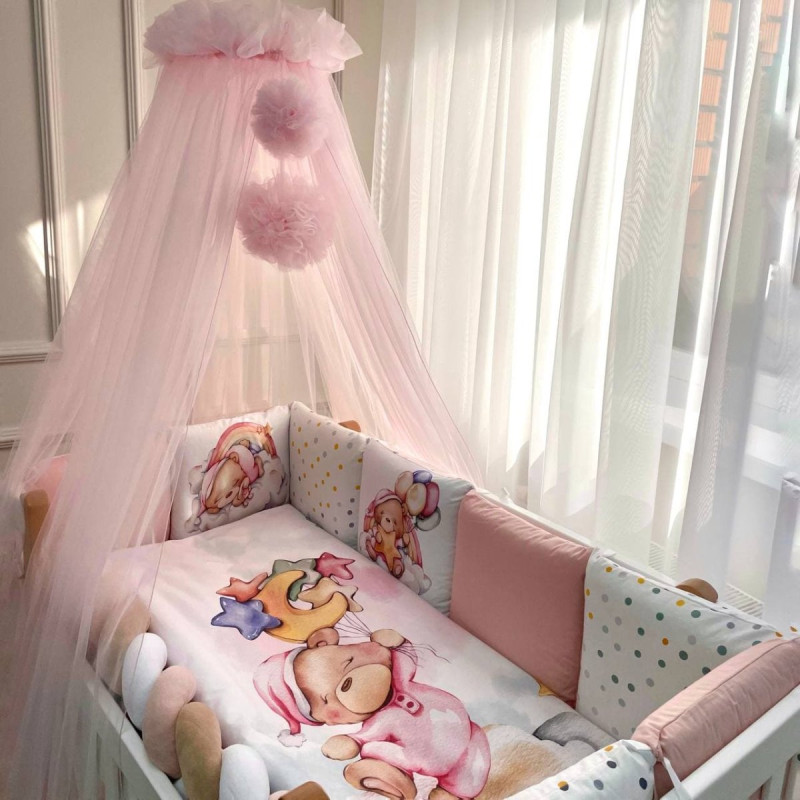Комплект постільної білизни з 6 предметів (бортики, ковдра, подушка, підковдра, наволочка, простирадло), 100% бавовна.