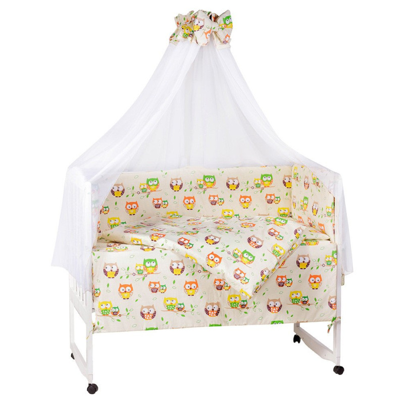 Комплектація:бортики;балдахін;подушка;ковдра;наволочка;підковдра;простирадло;