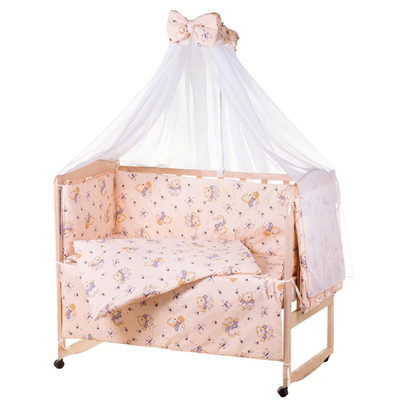 Комплектація:бортики;балдахін;подушка;ковдра;наволочка;підковдра;простирадло;