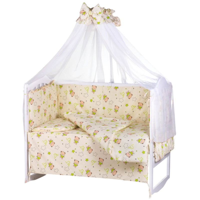 Комплектація:бортики;балдахін;подушка;ковдра;наволочка;підковдра;простирадло;