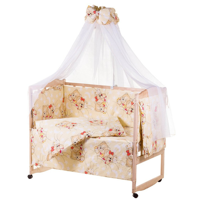 Комплектація:бортики;балдахін;подушка;ковдра;наволочка;підковдра;простирадло;