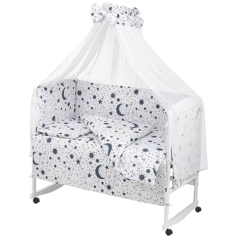Комплектація:бортики;балдахін;подушка;ковдра;наволочка;підковдра;простирадло;