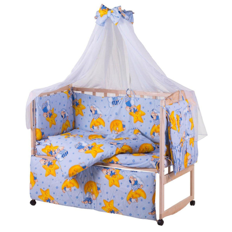 Комплектація:бортики;балдахін;подушка;ковдра;наволочка;підковдра;простирадло;