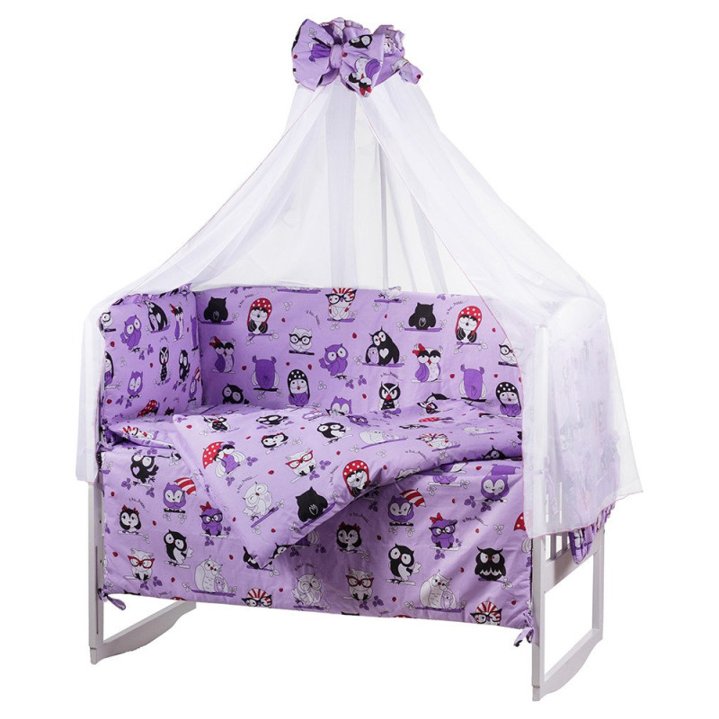 Комплектація:бортики;балдахін;подушка;ковдра;наволочка;підковдра;простирадло;