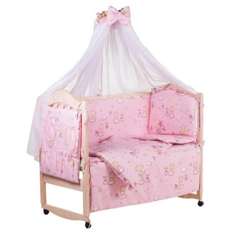 Комплектація:бортики;балдахін;подушка;ковдра;наволочка;підковдра;простирадло;