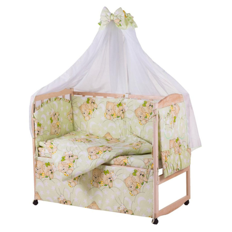Комплектація:бортики;балдахін;подушка;ковдра;наволочка;підковдра;простирадло;